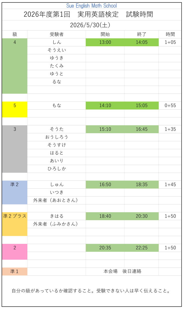 当スクールの生徒さんは、スクールが受験料を負担するので、英検は無料で受験できます。 (受験のみ原則小学3年生以上)